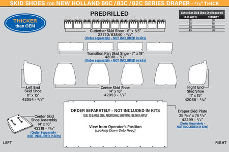 Replacement Skid Shoes for New Holland grain platforms. May Wes Premium Poly Skid Shoes are made in U.S.A. exclusively from virgin UHMW poly. We never use reprocessed UHMW or inferior plastics that wear out fast. Demand the best UHMW poly skid pads. Insist on May Wes. Proudly manufactured by our skilled plastic fabricators in our Hutchinson, Minnesota plastic shop.