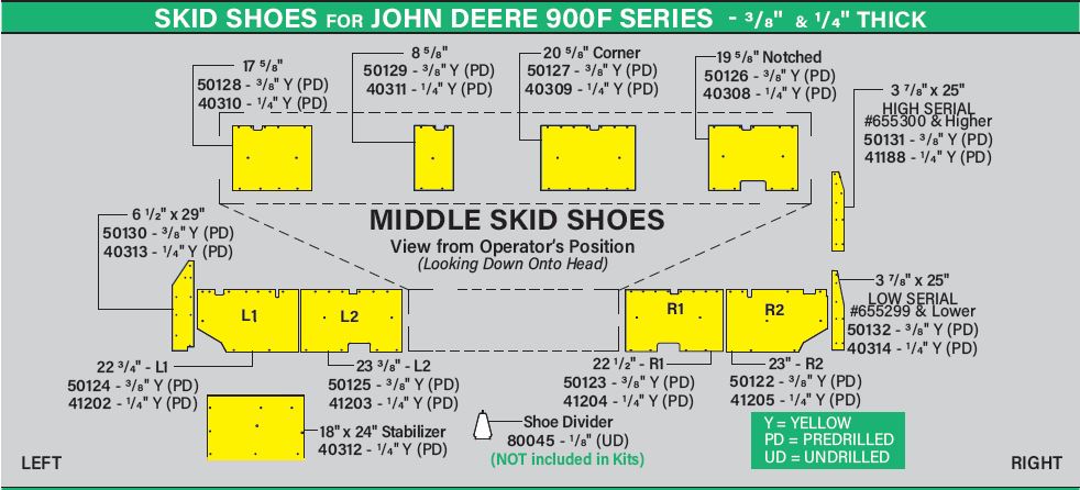 May Wes Premium Poly Skid Shoes for John Deere grain heads are manufactured from virgin ultra-high molecular weight polyethylene (UHMW-PE), the slickest and most durable thermoplastic on the market. Unlike some of our competitors, we never use reground UHMW or inferior HDPE milk jug plastic to make our poly skid pads. Designed for John Deere grain platforms, May Wes poly skid shoe kits are CNC cut, predrilled and formed to fit. They offer unmatched toughness and performance. Proudly made in the USA at our custom plastics shop in Hutchinson, Minnesota. Hardware included for easy installation.